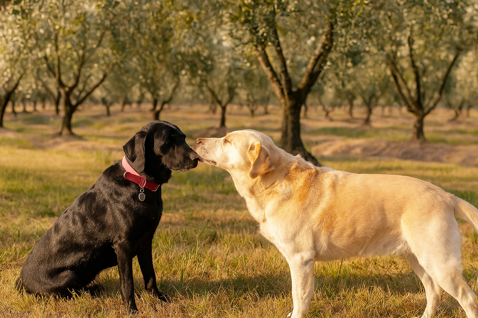 🐕 Rosie, on the other hand, is our is our enthusiastic hospitality manager. Her mission? To ensure no snack goes uneaten – whether it was meant for her or not. Her quality control method involves the occasional taste test of fallen olives 🍽️. She’s also an expert in “accidentally” being underfoot when food appears and greeting visitors with enthusiastic tail wags.
